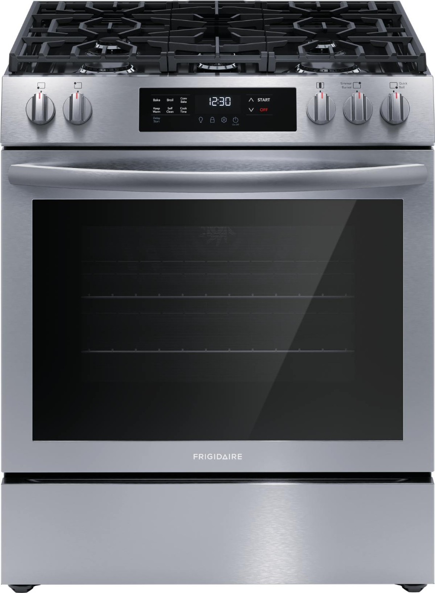 Complete your home kitchen system with the Frigidaire® 30" Stainless Steel Slide In Gas Range featuring Convection Bake, Quick Boil Burner, and Flexible Five Burner Cooktop.Read More