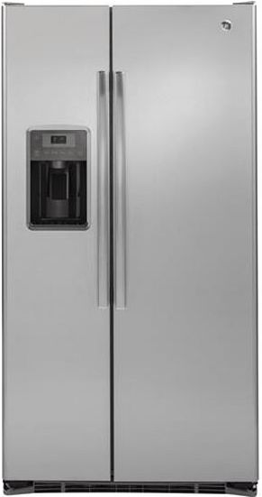 GE® 22.0 Cu. Ft. Counter Depth Side By Side Refrigerator-Stainless Steel with LED lighting, glass shelves and clear door binsRead More