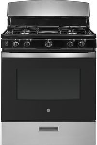Complete your home kitchen system with the GE® 30" Stainless Steel Freestanding Gas Range, featuring a 13,000 BTU burner, big view window, and Precise Simmer burner.Read More
